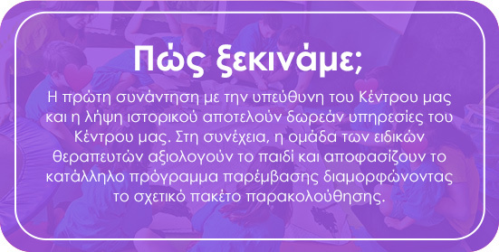 Στο κέντρο μας παρέχεται αξιολόγηση και παρέμβαση στις διαταραχές αισθητηριακής ολοκλήρωσης από εξειδικευμένο εργοθεραπευτή σε έναν ειδικά διαμορφωμένο χώρο.